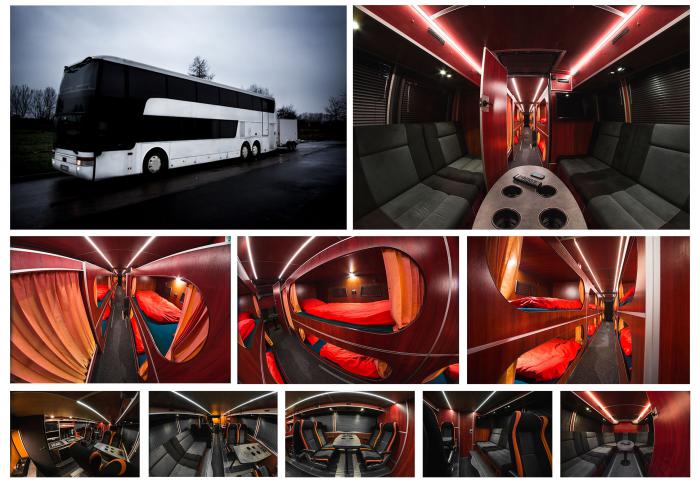 Designed as high standard mobile home for bands and road crew the bus ensures smooth, clean and enjoyable travels across Europe.