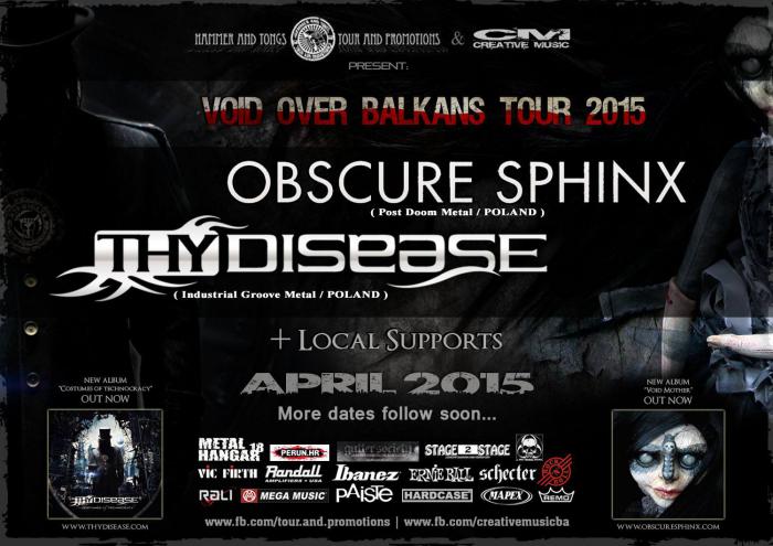 Hammer and Tongs Tour and Promotion i Stage 2 Stage we współpracy z Creative Music ma przyjemność zaanonsować kolejną trasę, tym razem poza granicami naszego kraju! OBSCURE SPHINX i THY DISEASE łączą siły, aby w kwietniu 2015 uderzyć wspólnie na Bałkany pod hasłem VOID OVER BALKANS 2015! Trasa obejmie kraje takie jak: Czechy, Słowacja, Węgry, Bułgaria, Rumunia, Serbia, Bośnia i Chorwacja. O wszystkich miejscach i datach, w których będziecie mogli zobaczyć zespoły poinformujemy już wkrótce!