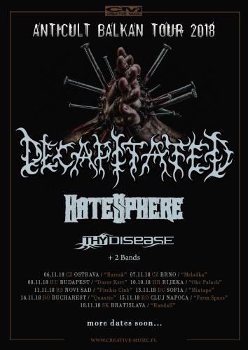 This fall, in November 2018 Polish death metallers DECAPITATED will hit the road again! Teamed up with Danish thrashers from HATESPHERE and their fellow countrymen THY DISEASE they will invade central and southern Europe promoting their latest album. ANTICULT BALKAN TOUR 2018 will roll over main cities in the region.