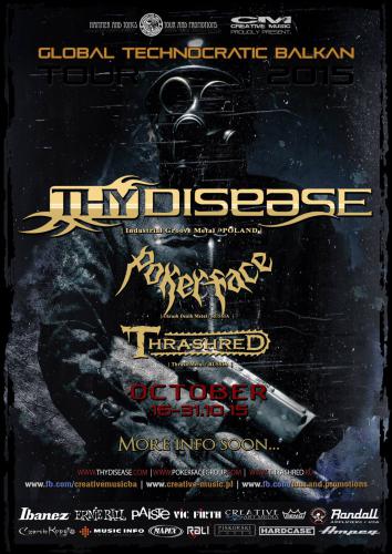 GLOBAL TECHNOCRATIC BALKAN TOUR 2015 is the codename of our October invasion to another 16 cities. There will be also two bands from Russia taking part in this tour with THY DISEASE - POKERFACE from Moscow and THRASHRED from St.Petersburg.