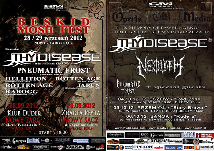Te wyjątkowe koncerty na których obok THY DISEASE zobaczymy NEOLITH, PNEUMATIC FROST oraz kilku specjalnych gości odbędą się kolejno:
