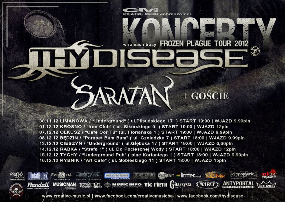 Podczas listopadowo-grudniowych koncertów THY DISEASE wspomagał będzie krakowski SARATAN.