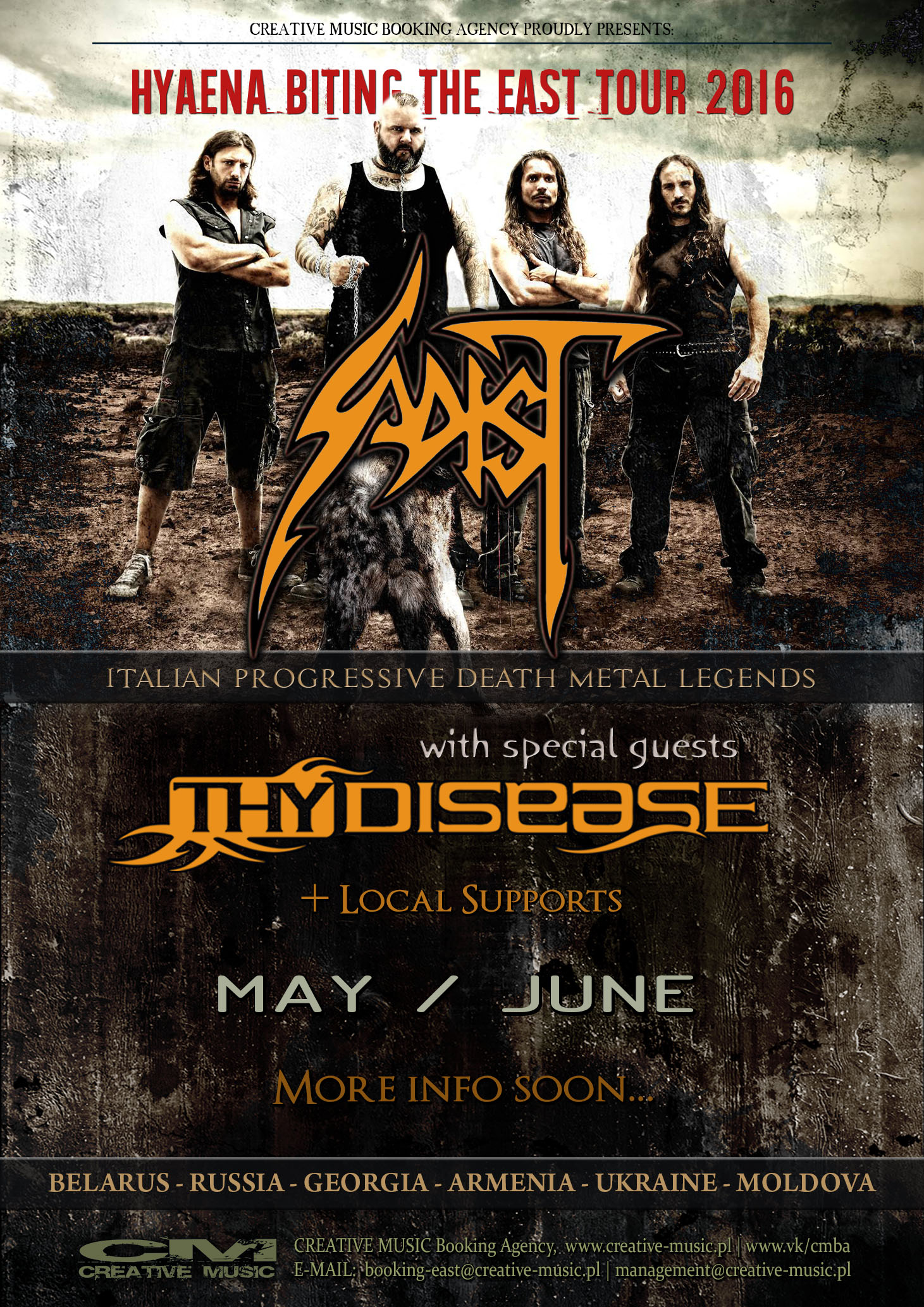 Na trasie "HYAENA BITING THE EAST 2016" grupę SADIST będzie wspomagać polski zespół THY DISEASE który intensywnie promuje swój szósty album ”Costumes Of Technocracy” wydany na początku 2014 roku nakładem Mystic Production.